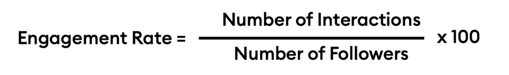 Engagement may vary depending on your number of followers. So, with engagement, there’s no benchmark to assess if you’re doing well. A better way to use this public relations metric is to calculate the engagement rate using the formula below.
